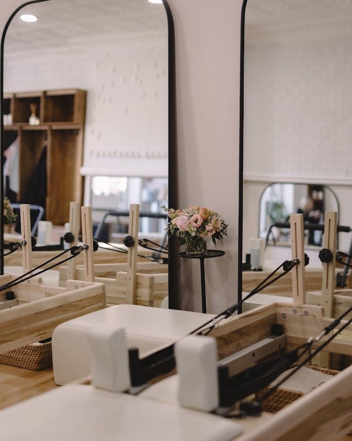 In April of 2024, Lena opened a cozy studio in the South End of Boston. Nestled within the storefront of a historic brownstone at 482A Columbus Avenue, the intricate moldings and soft neutral tones create a calm, intimate atmosphere that students love. This space is known as The Reformer Room, a community-focused studio designed for small classes and personal connection.